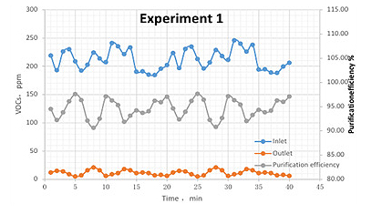 ¹è±â°¡½º³óµµ ±×¸²¿¡¼ º¼¼öÀÖµíÀÌ(ÀÚÀÏ·»:¿¡Æ¿¾Æ¼¼Å×ÀÌÆ®=2:1) ÀÔ±¸³óµµ°¡ 200~400ppmÀ̰í,¹è±â°¡½º Ãⱸ³óµµ´Â 5~20ppmÀ̸ç,ÀåºñÀÇÀüü È¿À²Àº 93%ÀÌ»óÀ» ³ªÅ¸³¿
